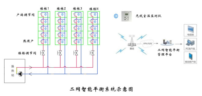 无线室温监测仪、楼栋智能调节阀、户端智能调节阀、二网智能平衡管理平台软件